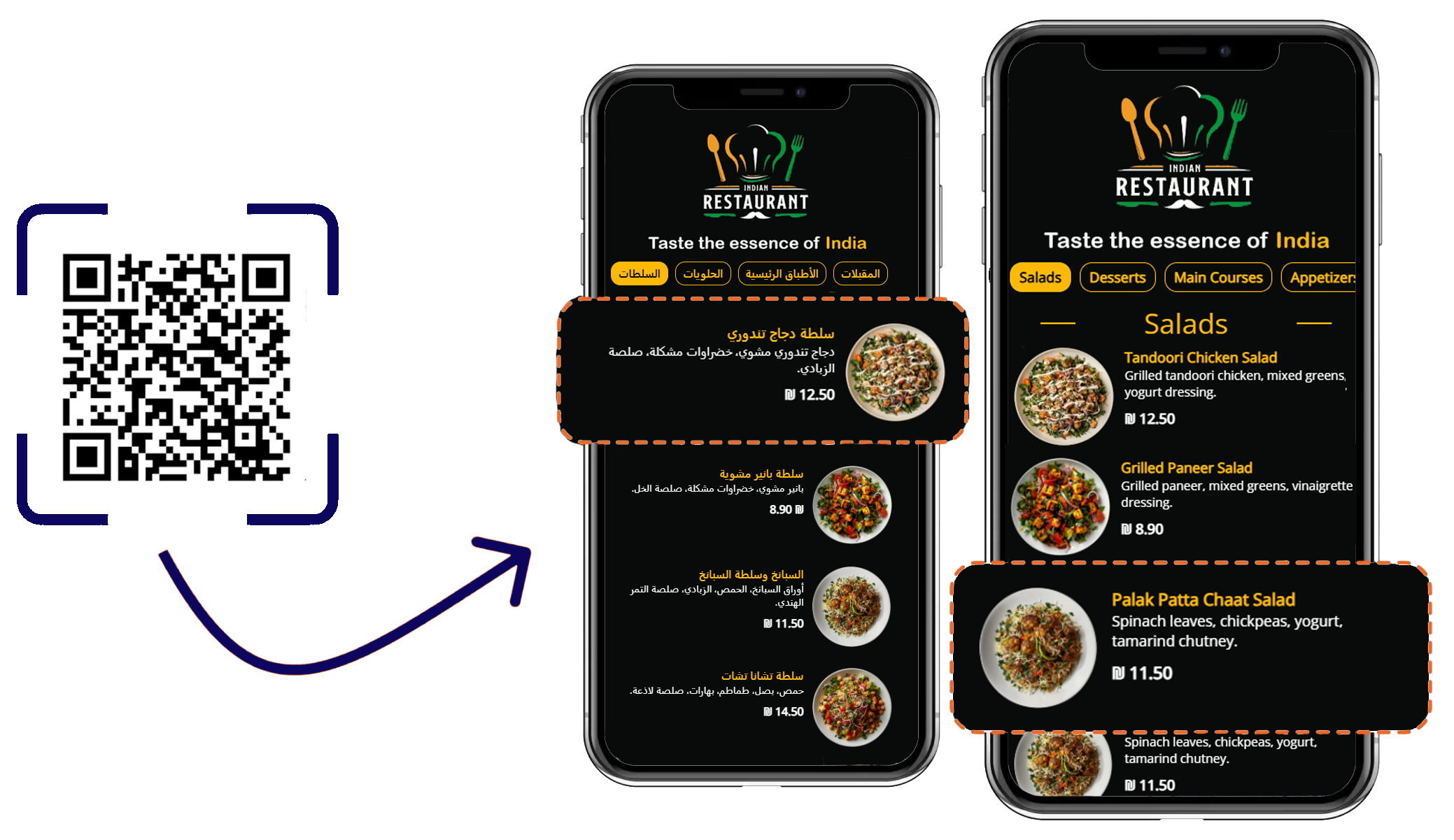 Your guests scan the QR code with their phone to view the menu and enjoy a safe, touch-free dining experience.